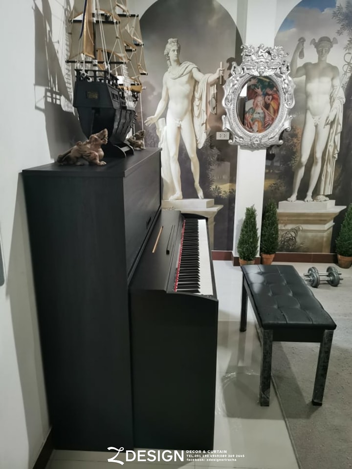 ผลงานการสั่งทำบิวท์อินแบบสั่งทำ ทำตามแบบที่ลูกค้าออกแบบมา ตู้ใส่หนังสือหลังเปียโน ออกแบบโดยลูกค้า งาน HMR ปิดผิวด้วยลามิเนตลายไม้สีดำ สั่งผลิตงาน 1 อาทิตย์ พร้อมส่งตรงถึงบ้าน