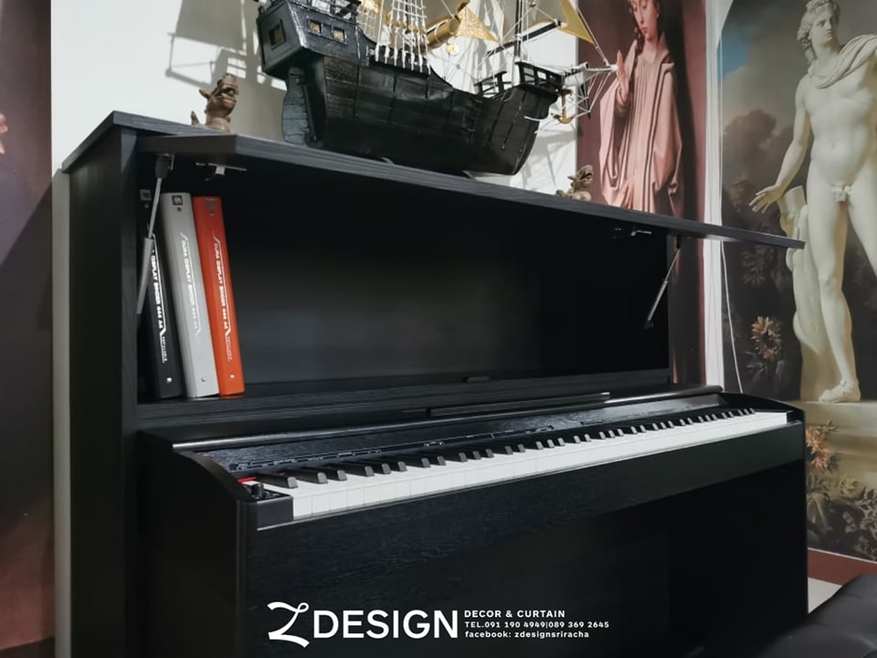 ผลงานการสั่งทำบิวท์อินแบบสั่งทำ ทำตามแบบที่ลูกค้าออกแบบมา ตู้ใส่หนังสือหลังเปียโน ออกแบบโดยลูกค้า งาน HMR ปิดผิวด้วยลามิเนตลายไม้สีดำ สั่งผลิตงาน 1 อาทิตย์ พร้อมส่งตรงถึงบ้าน